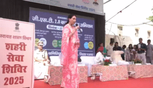 राज्य सरकार की जनहितकारी पहल शहरी सेवा शिविर 2025 के तहत वार्ड संख्या 13 से 16 तक का शिविर आज राठी पवेलियन, ब्यावर में आयोजित हुआ। शिविर का निरीक्षण उपमुख्यमंत्री दिया कुमारी ने किया। उन्होंने विभागीय काउंटरों पर पहुंचकर राजस्व, चिकित्सा-स्वास्थ्य, कृषि फसल गिरदावरी, जनाधार, वित्तीय समावेशन तथा जीएसटी 2.0 बचत अभियान से संबंधित सेवाओं की जानकारी ली।