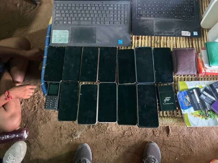 कार्रवाई के दौरान पुलिस ने तीन आरोपियों—भूराराम, पवन और रवि—को सरहद किला रोड के पास स्थित एक फार्म हाउस से गिरफ्तार किया। मौके से पुलिस ने 13 मोबाइल फोन, 2 लैपटॉप, 19 एटीएम कार्ड, 3 बैंक पासबुक, 1 बैंक चेक बुक और वाई-फाई उपकरण सहित अन्य सामान जब्त किया है।