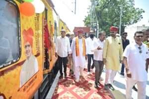 राजस्थान सरकार के देवस्थान विभाग द्वारा संचालित वरिष्ठ नागरिक तीर्थ यात्रा योजना 2025 के अंतर्गत रविवार को विशेष ट्रेन का शुभारंभ किया गया। यह ट्रेन पाली जिले की सुमेरपुर विधानसभा क्षेत्र स्थित जवाई बांध रेलवे स्टेशन से रवाना हुई। ट्रेन को पशुपालन, गोपालन, डेयरी एवं देवस्थान विभाग के कैबिनेट मंत्री जोराराम कुमावत ने हरी झंडी दिखाकर रवाना किया।