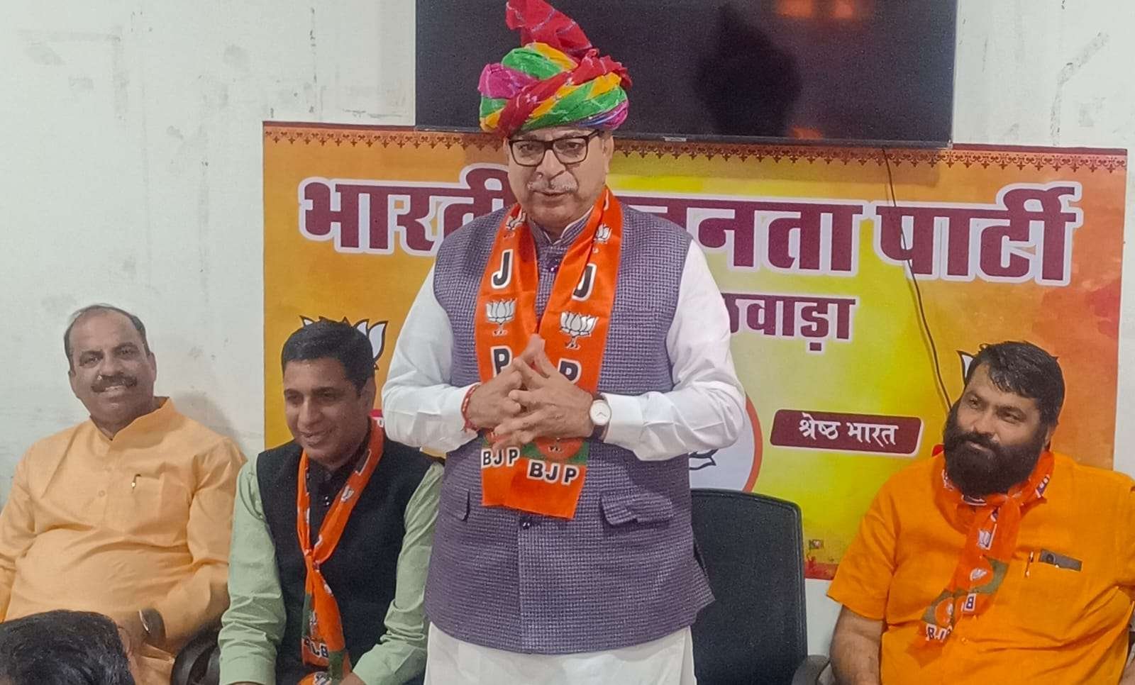 भारतीय जनता पार्टी के पूर्व प्रदेश अध्यक्ष एवं हरियाणा भाजपा के प्रदेश प्रभारी सतीश पूनिया का अल्प प्रवास के दौरान भीलवाड़ा आगमन पर भाजपा जिला कार्यालय में भव्य स्वागत किया गया। स्वागत समारोह जिलाध्यक्ष प्रशांत मेवाड़ा के नेतृत्व में आयोजित किया गया, जिसमें विधायक उदयलाल भडाना और महापौर राकेश पाठक भी मौजूद रहे।