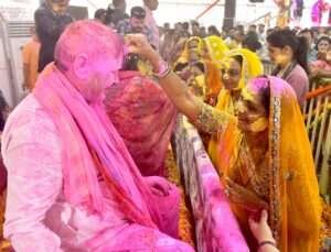 जयपुर। राजस्थान के मुख्यमंत्री भजनलाल शर्मा ने बुधवार को मुख्यमंत्री निवास पर आयोजित भव्य होली महोत्सव में आमजन के साथ हर्षोल्लास से रंगों का त्योहार मनाया। प्रदेशभर से हजारों की संख्या में पहुंचे लोगों ने फूलों और प्राकृतिक रंगों के साथ उत्सव में भाग लिया। मुख्यमंत्री ने सपत्नीक उपस्थित जनसमूह को गुलाल लगाया और फूलों की वर्षा कर आत्मीय अभिनंदन किया।