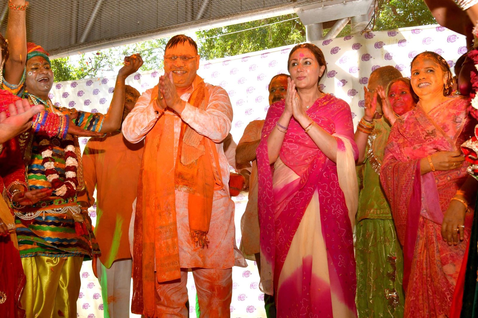 जयपुर। राजस्थान के मुख्यमंत्री भजनलाल शर्मा ने बुधवार को मुख्यमंत्री निवास पर आयोजित भव्य होली महोत्सव में आमजन के साथ हर्षोल्लास से रंगों का त्योहार मनाया। प्रदेशभर से हजारों की संख्या में पहुंचे लोगों ने फूलों और प्राकृतिक रंगों के साथ उत्सव में भाग लिया। मुख्यमंत्री ने सपत्नीक उपस्थित जनसमूह को गुलाल लगाया और फूलों की वर्षा कर आत्मीय अभिनंदन किया।