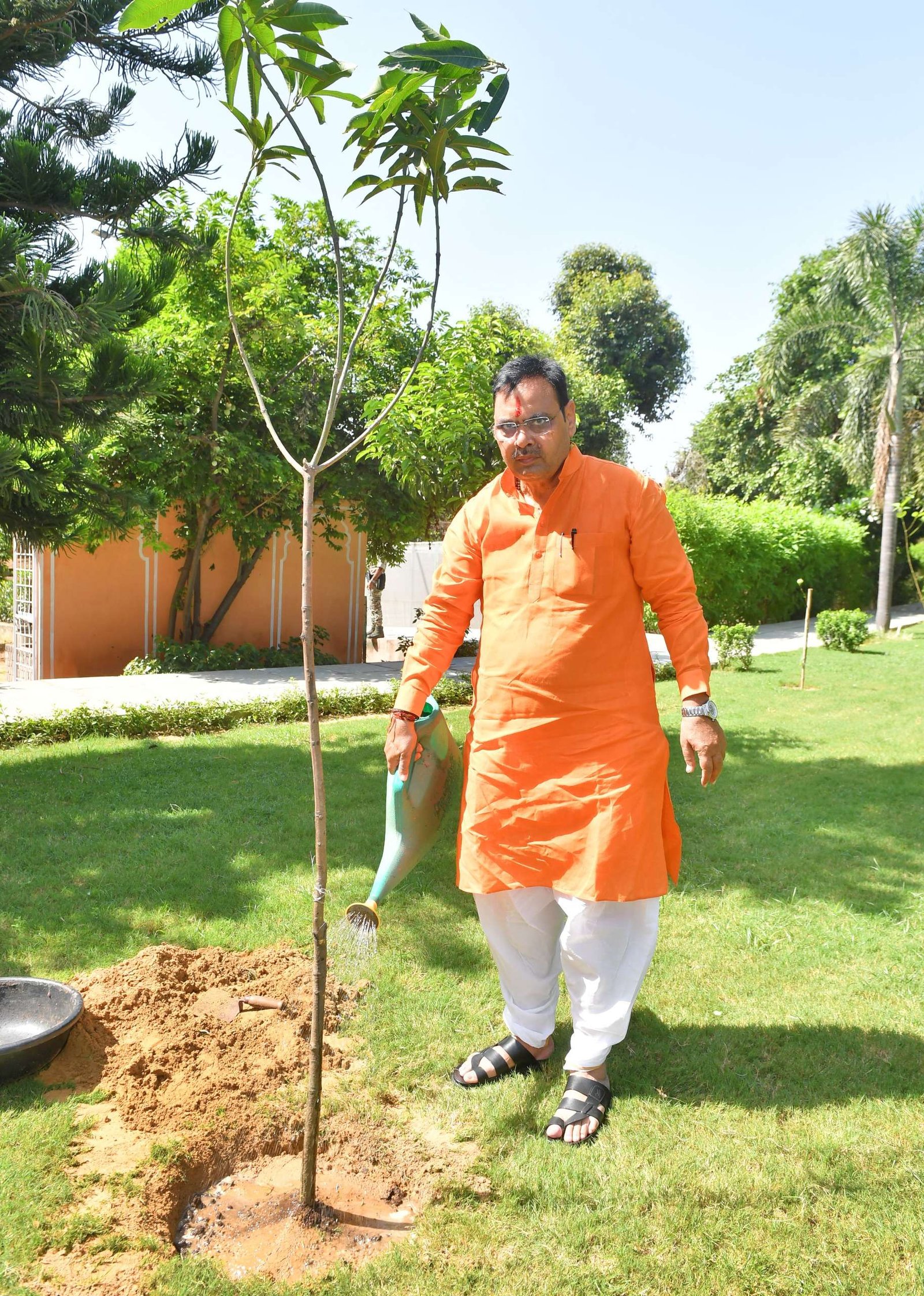 जयपुर । मुख्यमंत्री भजनलाल शर्मा ने सोमवार को मुख्यमंत्री निवास पर आम का पौधा लगाकर ‘एक पेड़ मां के नाम’ अभियान की शुरुआत की। इस अवसर पर उन्होंने आमजन से अधिक से अधिक पौधे लगाने का आह्वान किया और कहा कि स्वस्थ जीवन के लिए स्वच्छ एवं संतुलित पर्यावरण आवश्यक है।