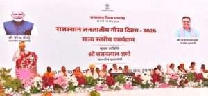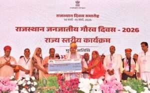 डूंगरपुर/जयपुर – राजस्थान दिवस के अवसर पर राजस्थानी जनजाति गौरव दिवस का आयोजन डूंगरपुर के बेणेश्वर धाम में किया गया। इस अवसर पर मुख्यमंत्री भजनलाल शर्मा ने कहा कि राजस्थान की विकास यात्रा में जनजातीय समाज का योगदान अतुलनीय है। आदिवासी समाज ने वीर सपूत दिए हैं जिन्होंने स्वतंत्रता संग्राम में महत्वपूर्ण भूमिका निभाई, और उनके सहयोग के बिना प्रदेश का विकास अधूरा है।