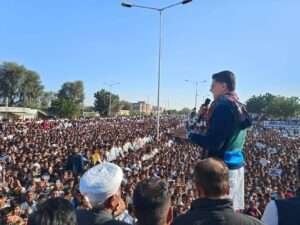 बाड़मेर। बाड़मेर जिले के धोरीमन्ना और गुड़ामालानी उपखंड को बालोतरा जिले में शामिल किए जाने के विरोध में रविवार को धोरीमन्ना में विशाल जन आक्रोश रैली का आयोजन किया गया। रैली में कांग्रेस के वरिष्ठ नेता और पूर्व उपमुख्यमंत्री सचिन पायलट ने शिरकत कर आंदोलन को समर्थन दिया।