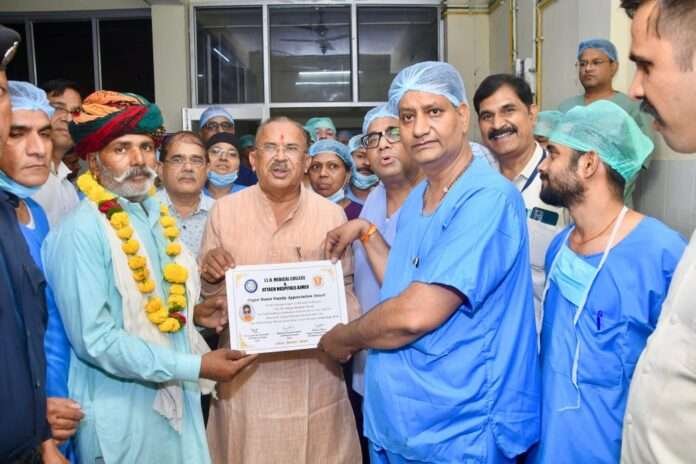 जेएलएन मेडिकल कॉलेज के प्राचार्य डॉ. अनिल सामरिया ने बताया कि दानदाता दुर्गा शंकर गुर्जर (16), निवासी कन्नौज, जिला अजमेर के ब्रेन डेथ घोषित होने के बाद परिवार ने अंगदान के लिए सहमति दी। पिता जवान राम गुर्जर, भाई रवि शंकर और दिनेश गुर्जर (दोनों नर्सिंग से जुड़े), और बहन समा गुर्जर (बीएससी नर्सिंग की छात्रा) ने इस पुण्य कार्य में सहमति देकर समाज के लिए प्रेरणादायक उदाहरण प्रस्तुत किया।