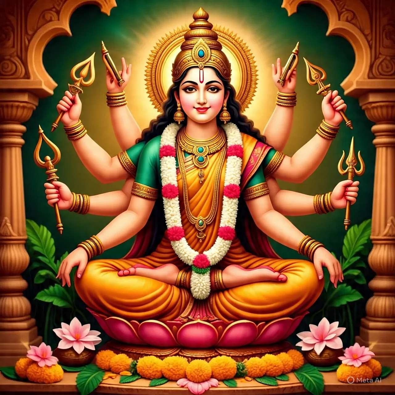 देवी को पीले फूल, खासकर गेंदे के फूल अर्पित किए जाते हैं।