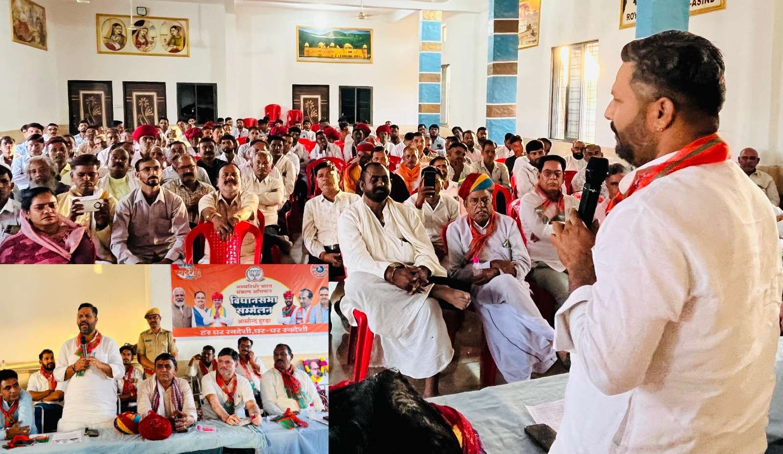 भीलवाड़ा। आसींद विधानसभा में आयोजित आत्मनिर्भर भारत अभियान के सम्मेलन में अभियान के सह संयोजक, राजस्थान सरकार में देवनारायण बोर्ड के अध्यक्ष ओमप्रकाश भडाणा मुख्य वक्ता के रूप में सम्मिलित हुए। उन्होंने उपस्थित जनसमूह को संबोधित करते हुए कहा कि आत्मनिर्भर भारत अभियान देश को आत्मनिर्भर बनाने के लिए एक महत्वपूर्ण पहल है।