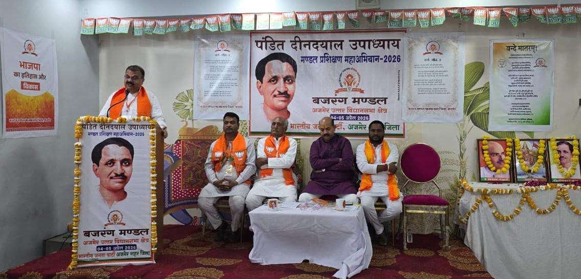 अजमेर। भारतीय जनता पार्टी के बजरंग मंडल द्वारा बांके बिहारी गार्डन में आयोजित ‘पंडित दीनदयाल उपाध्याय प्रशिक्षण वर्ग’ का भव्य आगाज हुआ। पहले दिन 150 से अधिक कार्यकर्ताओं ने भाग लेकर संगठन के प्रति अपनी प्रतिबद्धता दिखाई।