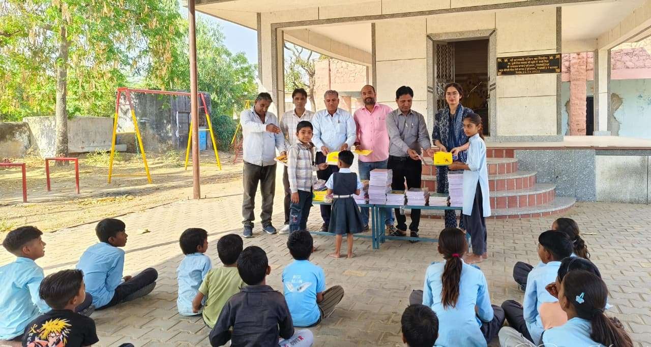 सेवानिवृत्त व्याख्याता नंदकुमार प्रजापत ने समाज के प्रति अपनी जिम्मेदारी निभाते हुए कक्षा 1 से 8 तक के सभी नामांकित एवं नव प्रवेशी विद्यार्थियों को अभ्यास पुस्तिकाएं और अध्ययन सामग्री वितरित की।
