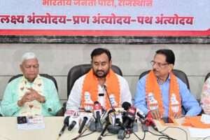 जयपुर (रूपनारायण सांवरिया) – भाजपा प्रदेश कार्यालय में आत्मनिर्भर भारत संकल्प अभियान की प्रदेश स्तरीय कार्यशाला आयोजित की गई। अभियान के प्रदेश प्रभारी, सांसद एवं भाजपा अनुसुचित जाति मोर्चा के राष्ट्रीय महामंत्री डॉ. भोला सिंह ने कार्यशाला के बाद प्रेसवार्ता को संबोधित किया।