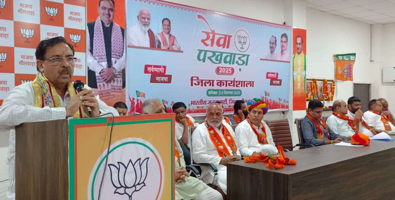 भीलवाड़ा । (विनोद सेन)। भारतीय जनता पार्टी के केंद्र एवं प्रदेश नेतृत्व के निर्देशानुसार भीलवाड़ा जिले में सेवा पखवाड़ा, आत्मनिर्भर भारत संकल्प अभियान तथा नेक्स्ट-जनरेशन जीएसटी सुधार अभियान को लेकर भाजपा की जिला कार्यशाला का आयोजन किया गया। जिला कार्यालय पर आयोजित इस कार्यशाला में भाजपा के पूर्व प्रदेश अध्यक्ष एवं राज्य वित्त आयोग के अध्यक्ष अरुण चतुर्वेदी मुख्य अतिथि रहे, जबकि भाजपा जिलाध्यक्ष प्रशांत मेवाड़ा की अध्यक्षता में कार्यक्रम सम्पन्न हुआ।