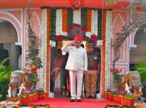 जयपुर। मुख्यमंत्री भजनलाल शर्मा ने 77 वें गणतंत्र दिवस के अवसर पर सोमवार सुबह मुख्यमंत्री निवास पर ध्वज फहराया।