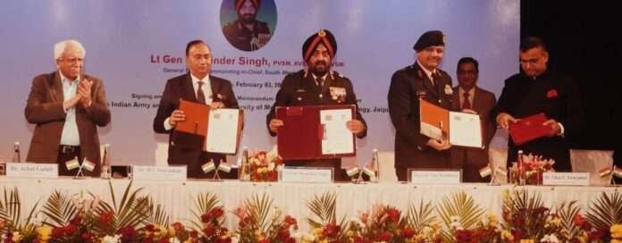 यूनिवर्सिटी के संस्थापक डॉ एम एल स्वर्णकार ने सेना के प्रोफेशनल्स की निस्वार्थ देश सेवा, साहस बलिदान की भावना से प्रेरित होकर इसकी घोषणा की। इसके अलावा सेना के मेडिकल कॉलेजों के साथ भी तकनीकी आदान प्रदान भी किया जाएगा। इस समझौते को ऐतिहासिक बताते हुए कहा कि यह दोनों संस्थानों के बीच सहयोग की नई दिशा तय करेगा। इसके माध्यम से अनुसंधान, तकनीकी विकास एवं शिक्षा के क्षेत्र में आपसी सहयोग को बढ़ावा मिलेगा। समझौते के तहत छात्रों को आधुनिक तकनीक, प्रशिक्षण एवं अनुसंधान के बेहतर अवसर प्राप्त होंगे।