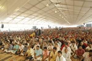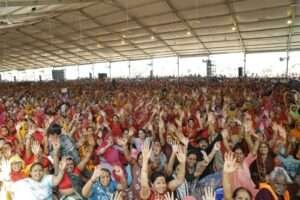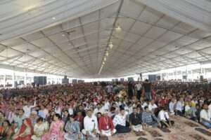 भीलवाड़ा (विनोद सेन। मेवाड़ की पावन धरा पर आयोजित श्री शिव महापुराण कथा में श्रद्धालुओं का जनसैलाब लगातार उमड़ रहा है। पंडित प्रदीप मिश्रा के श्रीमुख से कथा श्रवण के लिए मेडिसिटी ग्राउंड में आयोजित सात दिवसीय कार्यक्रम के तीसरे दिन पांडाल पूरी तरह खचाखच भर गया। हालात यह रहे कि साढ़े चार लाख वर्ग फीट में फैले विशाल डोम और पाइप पांडाल के बाहर भी श्रद्धालुओं को खड़े होकर कथा सुननी पड़ी।