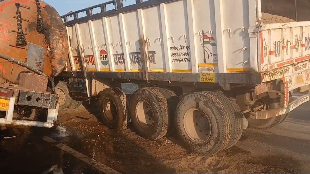 चाकसू (जयपुर): बजरी से भरे ट्रक ने केमिकल ट्रक को मारी टक्कर,