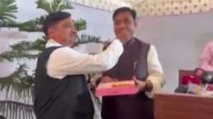 जयपुर। राजस्थान प्रदेश कांग्रेस कमेटी के प्रतिशत अध्यक्ष गोविंद सिंह डोटासरा के डुप्लीकेट का एक वीडियो सोशल मीडिया पर वायरल होने के बाद आज राजस्थान विधानसभा परिसर में दोनों की सुखद मुलाकात रही। अजमेर निवासी नरेश सिंधी ने गोविंद सिंह डोटासरा से विधानसभा परिसर में मुलाकात की। इस अवसर पर गोविंद सिंह डोटासरा ने नरेश सिंधी का लड्डू खिलाकर मुंह मीठा कराया और मीडिया के सामने कहा कि अब यह मेरा धर्म भाई है। क्योंकि इसको मेरे से मिलवाने का काम सोशल मीडिया और आप मीडिया के लोगों ने किया है।