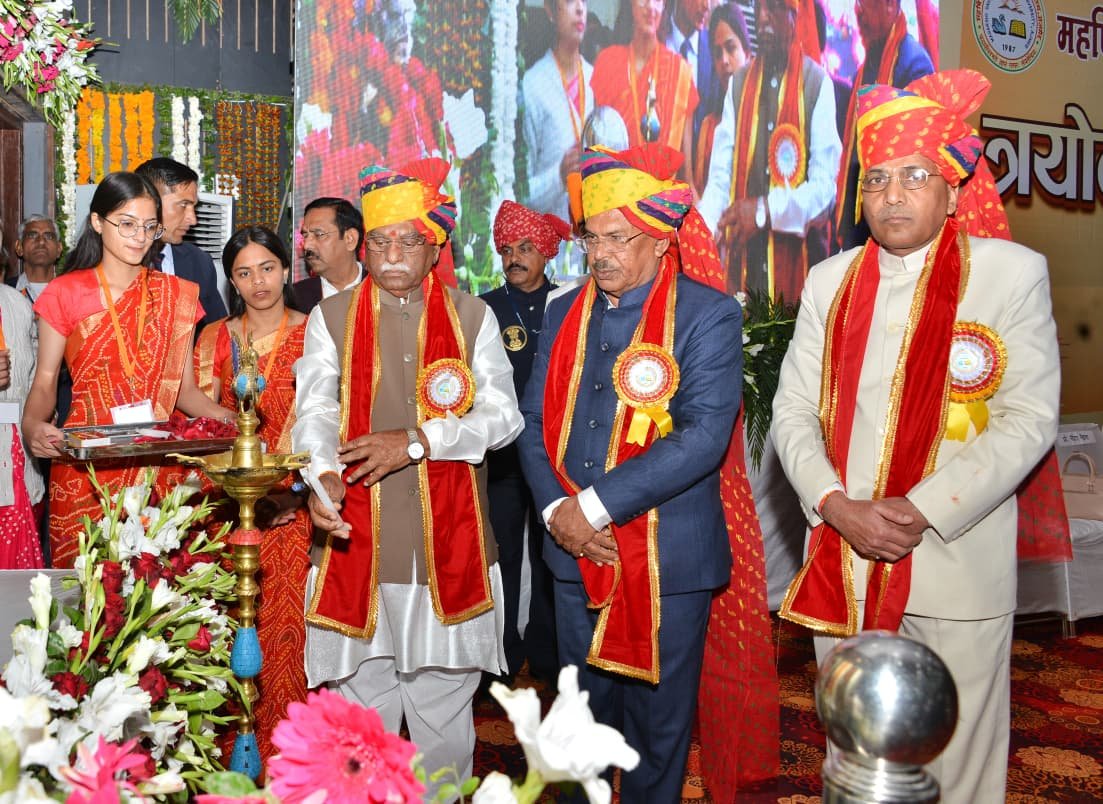 अजमेर | महर्षि दयानंद सरस्वती विश्वविद्यालय (एमडीएसयू) का त्रयोदश दीक्षांत समारोह गुरुवार को विश्वविद्यालय के सत्यार्थ सभागार में गरिमामय एवं भव्य वातावरण में आयोजित हुआ। समारोह की अध्यक्षता राज्यपाल एवं कुलाधिपति हरिभाऊ बागडे ने की। कार्यक्रम का शुभारंभ दीप प्रज्वलन एवं विश्वविद्यालय गीत के साथ हुआ।