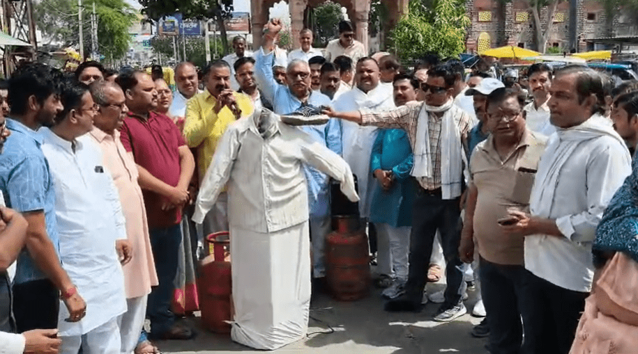 भरतपुर। रसोई गैस की बढ़ी कीमतों और कॉमर्शियल सिलेंडर की बिक्री पर रोक के विरोध में जिला कांग्रेस कमेटी के बैनर तले कांग्रेस कार्यकर्ताओं ने बिजली घर चौराहा, भरतपुर पर केंद्र सरकार का पुतला दहन किया। कार्यक्रम जिला कांग्रेस अध्यक्ष दिनेश सूपा के निर्देशन में आयोजित किया गया।