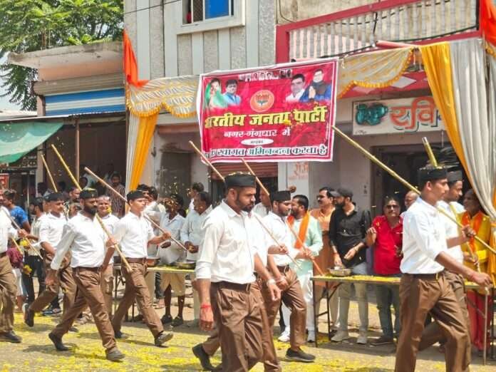 राष्ट्रीय स्वयंसेवक संघ (आरएसएस) की स्थापना के शताब्दी वर्ष के अवसर पर देशभर में पथ संचलन का आयोजन किया जा रहा है। इसी श्रृंखला में आज झालावाड़ जिले के गंगधार में भव्य पथ संचलन आयोजित किया गया। यह संचलन हजारी बाग से प्रारंभ होकर कस्बे के मुख्य बाजारों से होकर गुजरा, जहाँ जगह-जगह नागरिकों ने स्वयंसेवकों का उत्साहपूर्वक स्वागत किया।