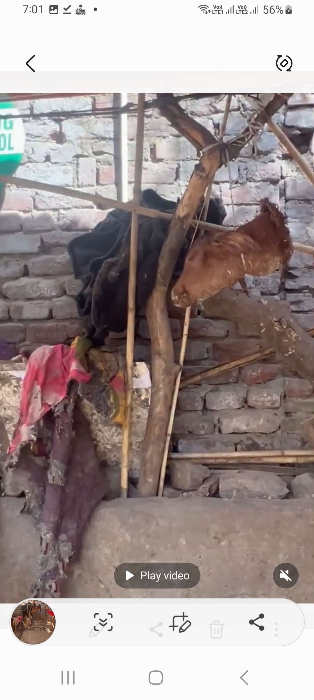 जयपुर। जयपुर में श्याम नगर इलाके में सोमवार को सोशल मीडिया पर गाय के बछड़े को मार कर लटकाने का एक वीडियो वायरल होने से हड़कंप बच गया । पुलिस को सूचना मिली कि अशोकपुर की गली नंबर 3 में किसी ने गाय के बछड़े का सिर काटकर चौराहे पर लटका दिया है पुलिस मौके पर पहुंची तब लोगों की भीड़ लगी हुई थी और लोग उसका वीडियो,फोटो बना रहे थे और पास में गाय बंदी हुई थी । थानाधिकारी दलबीर सिंह मौके पर पहुंचे पुलिस उपायुक्त दक्षिण राज भी मौके पर पहुंचे। मकान नंबर ए 46 के पास गए बंद हुई थी उसके पास ही एक बछड़े का कटा हुआ सब लटका हुआ पुलिस ने स सिर कब्जे में लिया और गाय के मालिक सत्यनारायण शर्मा उर्फ बंटी से पूछताछ की तो उसने स्वीकार किया कि यह उसकी गाय के बछड़े का ही सर है