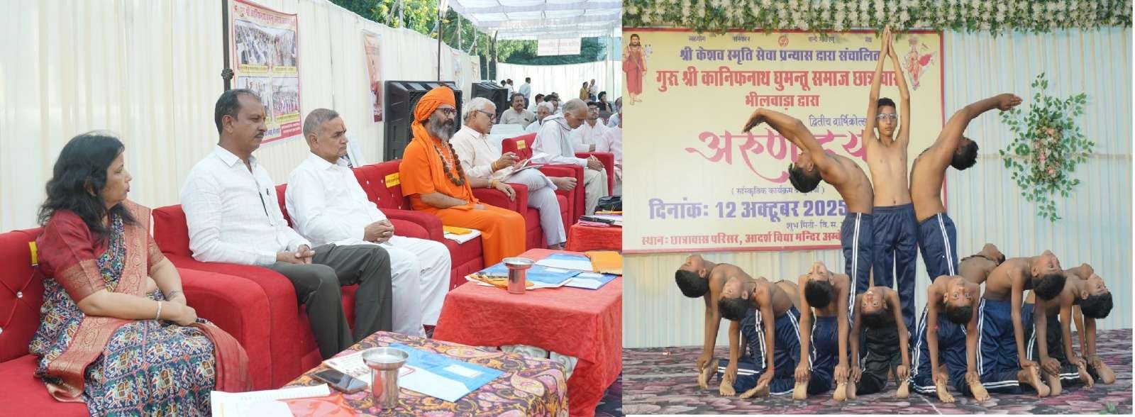 भीलवाड़ा, पंकज पोरवाल: श्री केशव स्मृति सेवा प्रन्यास द्वारा संचालित गुरु श्री कानिफनाथ घुमंतू छात्रावास, अंबेडकर नगर में रविवार को वार्षिकोत्सव अरुणोदय-2025 का भव्य आयोजन संपन्न हुआ। इस गरिमामय समारोह को स्वामी अच्युतानंद के पावन सानिध्य प्राप्त हुए, जिन्होंने उपस्थित लोगों को आशीर्वाद दिया।