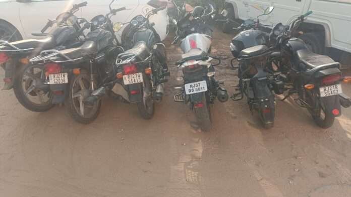 नागौर: कोतवाली थाना पुलिस ने बड़ी कार्रवाई करते हुए हिस्ट्रीशीटर दिलीप विश्नोई के रहवासी मकान के पास स्थित खाली बाड़े से 6 संदिग्ध मोटरसाइकिलें जब्त की हैं। पुलिस ने यह कार्रवाई “ऑपरेशन संकल्प—नशामुक्त नागौर” के तहत की।