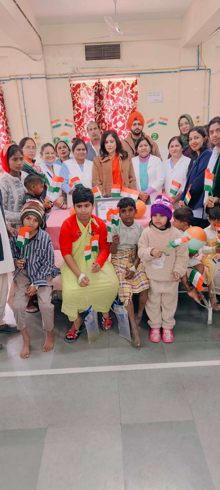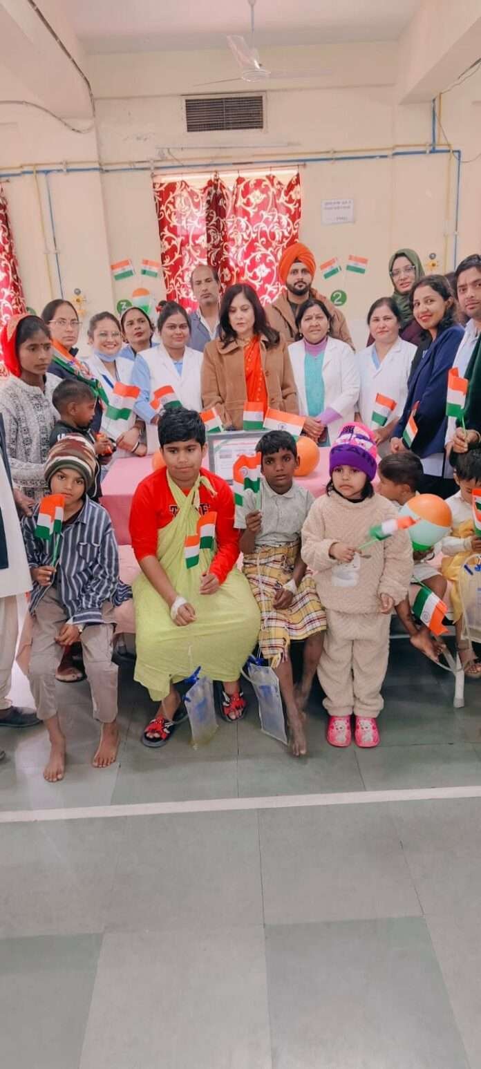 गणतंत्र दिवस पर बच्चो को उनके परिजनों को बिस्किट ,चॉकलेट,लड्डू के साथ खुशियां बाटते नजर आए यूनिट इंचार्ज नीलम नावरिया सीनियर नर्सिंग ऑफिसर, अस्पताल अधीक्षक dr. R N sehra ,उप अधीक्षक डॉ मनीष शर्मा , सर्जिकल इकाई द्वितीय की इकाई प्रमुख डॉ प्रमिला शर्मा ,सर्जिकल विभाग की विभागाध्यक्ष सीनियर प्रोफेसर डॉ विनीता चतुर्वेदी भर्ती मासूम बच्चों के साथ ही परिजनो की खुशी देखने लायक थी।