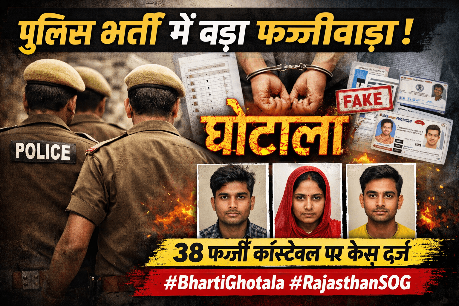 जालौर में राजस्थान पुलिस भर्ती 2018 और 2021 में हुए फर्जीवाड़े का बड़ा पर्दाफाश हुआ है। स्पेशल ऑपरेशन ग्रुप (SOG) ने फर्जी दस्तावेजों और डमी कैंडिडेट के जरिए नौकरी पाने वाले 38 कांस्टेबलों के खिलाफ मुकदमा दर्ज किया है। इनमें 2018 बैच के 26 और 2021 बैच के 12 कांस्टेबल शामिल हैं।