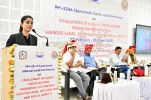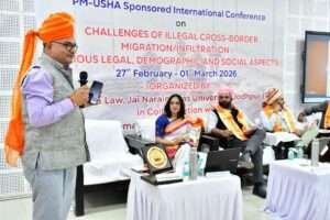 जोधपुर। जयनारायण व्यास विश्वविद्यालय के विधि संकाय एवं सीमाजन कल्याण समिति राजस्थान के संयुक्त तत्वावधान में पी.एम. उषा प्रायोजित त्रिदिवसीय अंतरराष्ट्रीय संगोष्ठी के दूसरे दिन विभिन्न तकनीकी सत्रों में सीमा सुरक्षा, जनसांख्यिकीय परिवर्तन और राष्ट्रीय सुरक्षा से जुड़े मुद्दों पर व्यापक चर्चा हुई।
