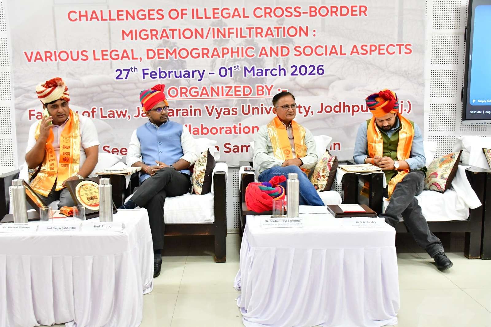 जोधपुर। जयनारायण व्यास विश्वविद्यालय के विधि संकाय एवं सीमाजन कल्याण समिति राजस्थान के संयुक्त तत्वावधान में पी.एम. उषा प्रायोजित त्रिदिवसीय अंतरराष्ट्रीय संगोष्ठी के दूसरे दिन विभिन्न तकनीकी सत्रों में सीमा सुरक्षा, जनसांख्यिकीय परिवर्तन और राष्ट्रीय सुरक्षा से जुड़े मुद्दों पर व्यापक चर्चा हुई।