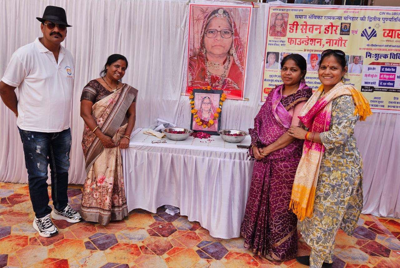 नागौर में समाज सेविका स्व. रामकन्या मनीहार की द्वितीय पुण्यतिथि पर जनसेवा का प्रेरणादायक उदाहरण देखने को मिला। डी सेवन डोर फाउंडेशन एवं व्यास मेडिसिटी सुपर स्पेशलिटी हॉस्पिटल, जोधपुर के संयुक्त तत्वावधान में एक भव्य निःशुल्क चिकित्सा शिविर का आयोजन किया गया। इस आयोजन ने श्रद्धांजलि को औपचारिकता से आगे बढ़ाकर जनकल्याण का वास्तविक रूप प्रदान किया।