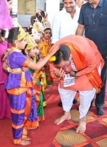 इस दौरान मुख्यमंत्री ने बस्सी नागा स्थित बजरंग गोशाला में गायों को गुड़ खिलाकर गौ सेवा की तथा जोबनेर स्थित कृषि विश्वविद्यालय में कर्ण नरेंद्र की प्रतिमा पर पुष्पांजलि अर्पित की। यहां छात्राओं से संवाद कर उनका उत्साहवर्धन भी किया।
