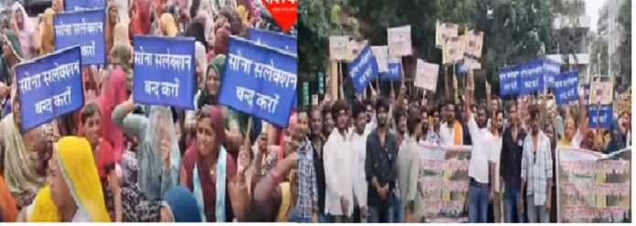 केमिकलयुक्त पानी छोड़ने के विरोध में ग्रामीणों का कलेक्ट्रेट पर प्रदर्शन