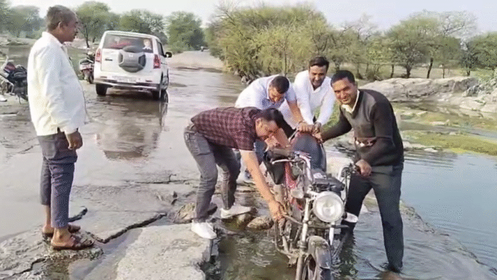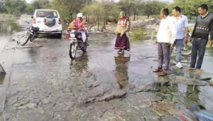 बागोर। अडर्सीपुरा–कोठारी नदी पुलिया पर बरसात के दौरान पानी के तेज बहाव से सड़क पर बड़े-बड़े गड्ढे (कटिंग खड्डे) बन गए हैं। इन गड्ढों में पानी भरे रहने के कारण दोपहिया वाहन चालक आए दिन दुर्घटना का शिकार हो रहे हैं। पुलिया के दोनों ओर पानी भरा होने से फिसलकर गिरने का खतरा लगातार बना हुआ है।