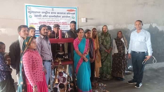 शहर में राज्य खादी ग्रामोद्योग आयोग, जयपुर के तत्वावधान में आयोजित 6 दिवसीय पत्तल-दोना मेकिंग मशीन प्रशिक्षण कार्यक्रम में महिलाओं को ऑटोमेटिक मशीन से पत्तल-दोना बनाने का प्रशिक्षण दिया गया।
