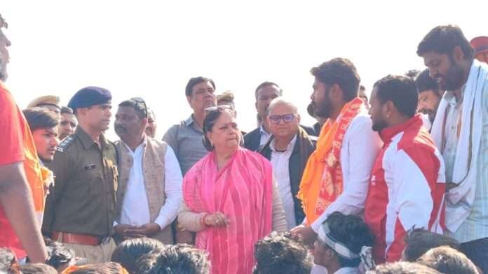 पूर्व मुख्यमंत्री रविवार को सुबह झलावाड़ से ब्यावर जाते समय कोटा में हैंगिंग ब्रिज के पास गौ संरक्षण की माँग को लेकर प्रदर्शन कर रहे सनातन गोरक्षा सेवा समिति,कोटा से जुड़े गौ रक्षकों को देखकर रुक गई।