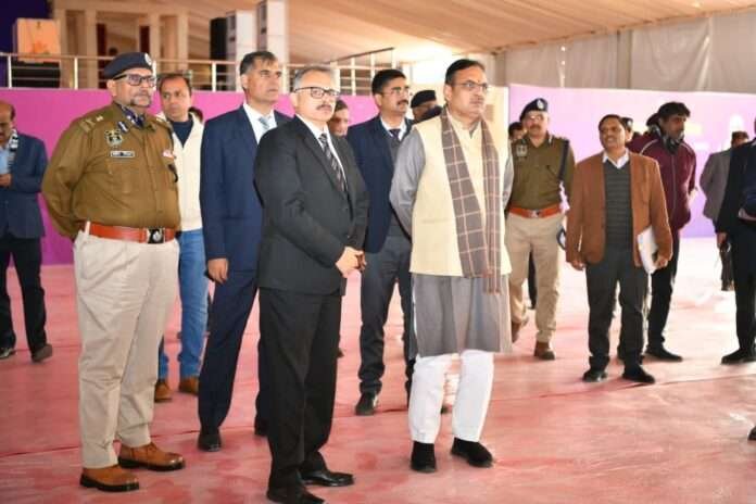 मुख्यमंत्री ने समारोह स्थल का निरीक्षण कर पुलिस अधिकारियों को सभी आवश्यक व्यवस्थाएं समयबद्ध और सुचारु रूप से सुनिश्चित करने के निर्देश दिए। उन्होंने सुरक्षा, यातायात, मंच व्यवस्था, आमंत्रित अतिथियों एवं नव चयनित आरक्षकों की सुविधाओं को लेकर विस्तार से जानकारी ली।