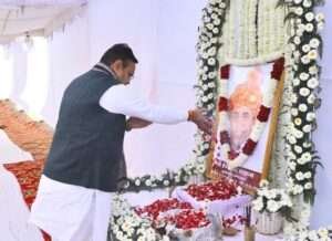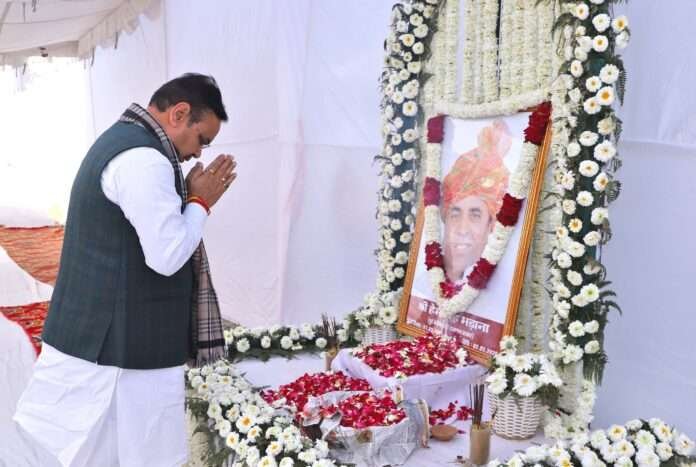 खैरथल-तिजारा/जयपुर। मुख्यमंत्री भजनलाल शर्मा ने रविवार को खैरथल-तिजारा के गांव बघेरी कलां में पहुंचकर पूर्व मंत्री स्व. हेमसिंह भड़ाना के निधन पर शोक व्यक्त किया। मुख्यमंत्री ने स्व. भड़ाना के चित्र पर पुष्प अर्पित कर उन्हें श्रद्धांजलि दी।