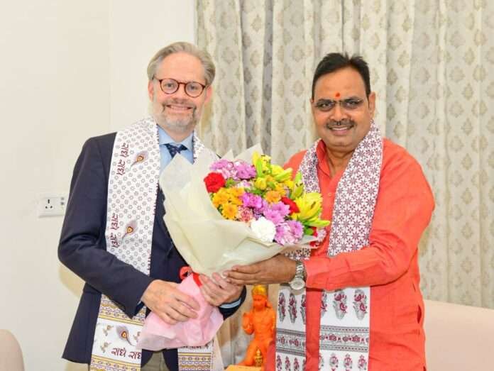 जयपुर । मुख्यमंत्री भजनलाल शर्मा से मंगलवार को डेनमार्क के राजदूत रासमस एबिल्डगार्ड क्रिस्टेंसन ने मुख्यमंत्री निवास पर मुलाकात की। मुख्यमंत्री से यह उनकी शिष्टाचार भेंट थी।