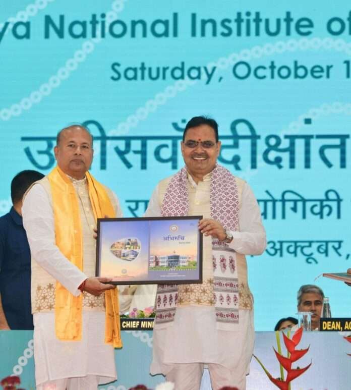 मुख्यमंत्री ने यह बात मालवीय राष्ट्रीय प्रौद्योगिकी संस्थान (एमएनआईटी) जयपुर के 19वें दीक्षांत समारोह में कही। इस अवसर पर उन्होंने बी.टेक, एम.टेक, एमएससी, एमबीए एवं आर्किटेक्चर और प्लानिंग में श्रेष्ठ प्रदर्शन करने वाले 21 विद्यार्थियों को गोल्ड मेडल पहनाकर डिग्रियां प्रदान की और हिन्दी भाषा में लिखे गए टेक्निकल जर्नल का विमोचन भी किया।