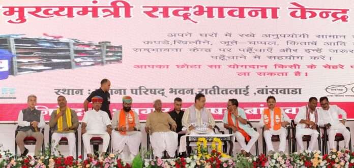 बांसवाड़ा/जयपुर । मुख्यमंत्री भजनलाल शर्मा ने शनिवार को बांसवाड़ा के कुशलबाग क्रिकेट स्टेडियम में शहरी सेवा शिविर का अवलोकन किया और टीबी मरीजों के परिजनों को निक्षय पोषण किट वितरित की। उन्होंने कहा कि डबल इंजन की सरकार वागड़ क्षेत्र में बुनियादी विकास के लिए कटिबद्ध है और आदिवासी क्षेत्रों में गरीब कल्याण एवं विकास योजनाओं के माध्यम से स्थानीय निवासियों को रोजगार और बेहतर जीवन स्तर मिल रहा है।