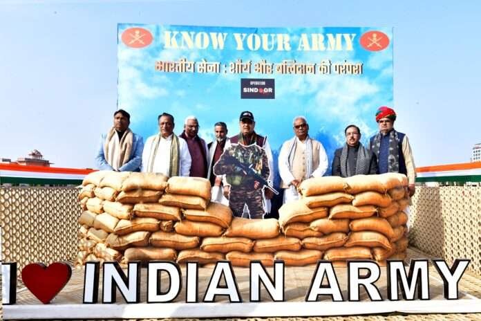 जयपुर । मुख्यमंत्री भजनलाल शर्मा ने 78वें सेना दिवस के उपलक्ष्य में आयोजित कार्यक्रमों के अंतर्गत गुरुवार को भवानी निकेतन शिक्षा समिति परिसर में चार दिवसीय ‘नो योर आर्मी’ प्रदर्शनी का उद्घाटन किया। इस अवसर पर उन्होंने प्रदर्शनी में प्रदर्शित भारतीय सेना के अत्याधुनिक उपकरणों, हथियारों और सैन्य संसाधनों का अवलोकन किया।