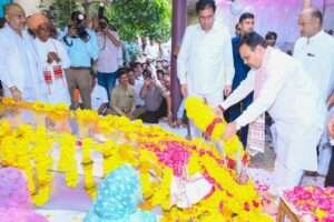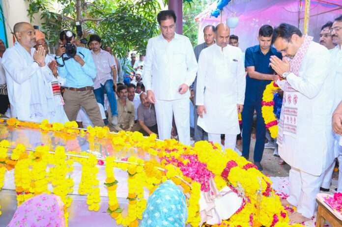 प्रतापगढ़/जयपुर । मुख्यमंत्री भजनलाल शर्मा ने रविवार को प्रतापगढ़ के अंबा माता का खेड़ा में पूर्व मंत्री स्व. नंदलाल मीणा की पार्थिव देह पर पुष्पचक्र अर्पित कर श्रद्धांजलि दी। उन्होंने दिवंगत मंत्री के पुत्र और राज्य सरकार में राजस्व मंत्री हेमंत मीणा तथा परिजनों को ढांढस बंधाया।