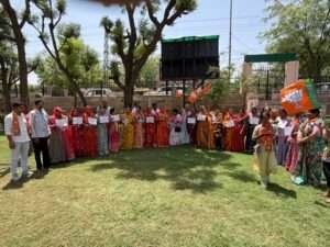 नागौर | (प्रदीप कुमार डागा) नागौर शहर के नेहरू पार्क में नारी शक्ति वंदन अधिनियम के समर्थन में सर्व समाज की माताओं, बहनों और बेटियों द्वारा एक भावपूर्ण कार्यक्रम का आयोजन किया गया। कार्यक्रम सुबह 10:30 बजे शुरू हुआ, जिसमें बड़ी संख्या में महिलाओं ने भाग लेकर महिला सशक्तिकरण के इस ऐतिहासिक कदम का स्वागत किया।