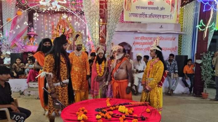 महोत्सव के दसवें दिन जयसियाराम मित्र मंडल झोर की युवा टीम ने गरबा पांडाल में धनुष यज्ञ और सीता स्वयंवर का भव्य मंचन किया।