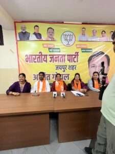 इस अवसर पर मीडिया प्रभारी भारती खंडेलवाल, प्रवक्ता खेमचंद शर्मा, मंत्री क्षमा अग्रवाल और जूही केडिया भी उपस्थित रहीं।