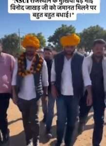जयपुर। एनएसयूआई के प्रदेश अध्यक्ष विनोद जाखड़ और उनके सहयोगियों को आज राजस्थान हाई कोर्ट से जमानत मिल गई।