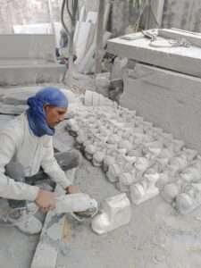 यहाँ काले पत्थर, संगमरमर, लाल और पीले पत्थरों पर मूर्तियाँ बनाई जाती हैं।