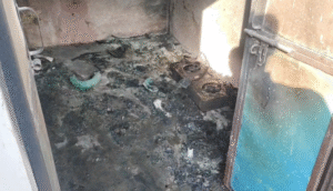 जानकारी के अनुसार न्यू कॉलोनी निवासी राकेश पुत्र महेंद्र दास और उनके पिता महेंद्र दास के मकान में सुबह करीब साढ़े 8 बजे रसोई में गैस चूल्हे पर पानी गर्म किया जा रहा था। इसी दौरान पास रखे गैस सिलेंडर से गैस रिसाव हुआ और आग भड़क उठी। देखते ही देखते आग ने विकराल रूप धारण कर लिया और आसपास रखा सामान भी चपेट में आ गया।